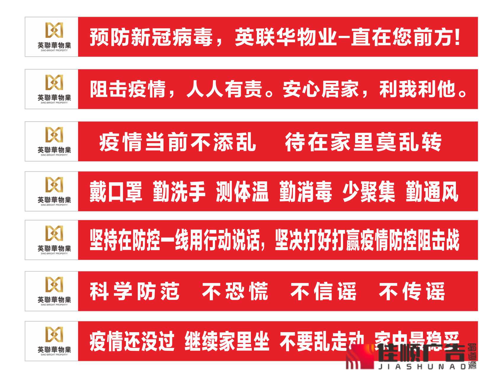 2.疫情防控宣传横幅、标语:热转印,最快2个小时;彩色染印12个小时,基本每天早上9点出货;